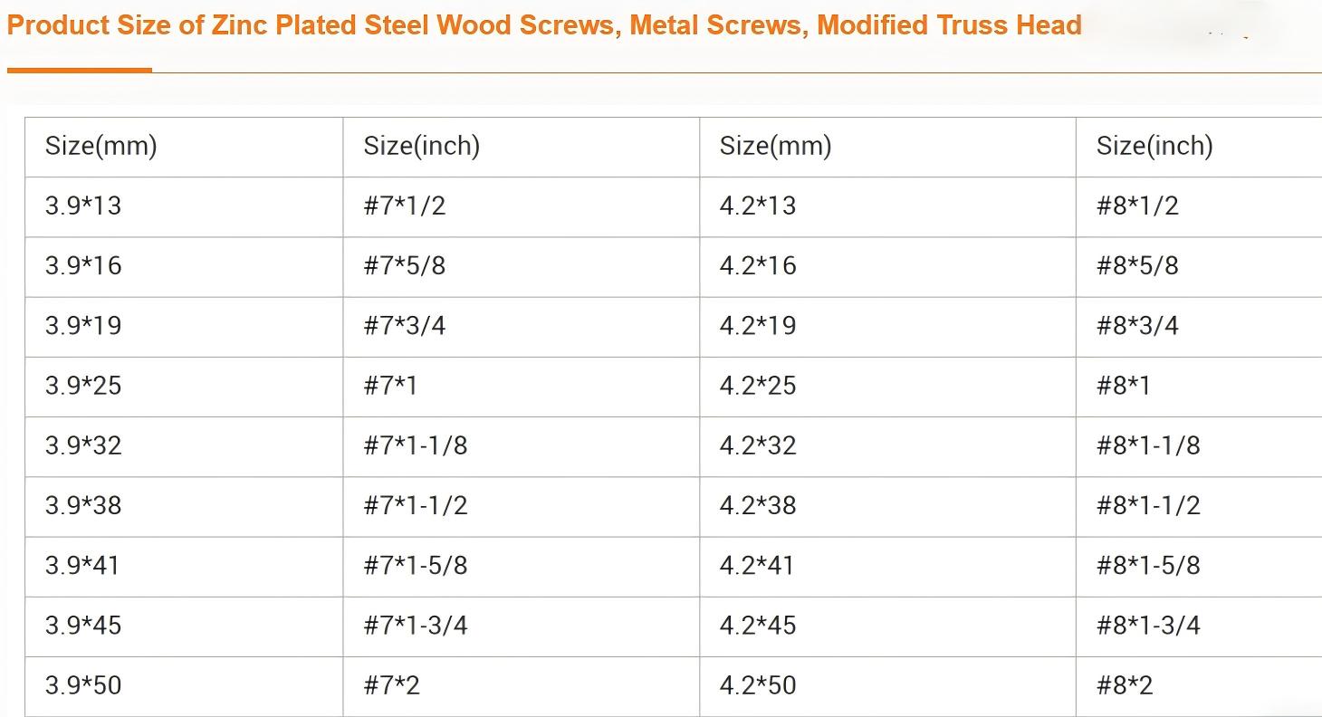 1.Head type of screws: Truss Head/Wafer Head/Big Flat Round Head
